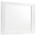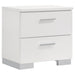 Upgrade your bedroom with this ultra-modern platform bed and matching case pieces. The bed features a sleek white faux leather upholstery with horizontal channel tufting, while its low-profile design enhances the contemporary aesthetic. Case pieces are finished in a polished white high-gloss polyurethane for a clean, sophisticated look. Polished chrome metal bar handles provide a sleek contrast, while spacious drawers with felt-lined top sections offer both style and functionality.