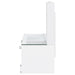 Transform your daily routine with this modern vanity desk, expertly merging sleek aesthetics and smart organization. Its high gloss finish, paired with clear acrylic handles, imparts a bright, contemporary look. Two smooth-gliding drawers and a cabinet with a framed fluted panel and adjustable shelf provide ample storage for cosmetics and styling tools. A tempered glass top keeps the surface pristine, while the integrated LED mirror, activated by a touch switch, ensures flawless lighting for every occasion. Key Features: • A vanity desk featuring a crisp white high gloss finish • Integrated LED mirror with touch switch for perfect illumination • Two drawers and a cabinet with a framed fluted panel for organized storage • Adjustable shelf inside the cabinet to fit various accessories • Clear acrylic handles and tempered glass top for a stylish, modern flair • Crafted from engineered wood for lasting durability and chic appeal