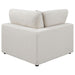 Covered in a linen-like fabric all around, this super comfy five-piece sectional offers all the seating you need in an open concept living room or entertainment area. Designed with two armless chairs, two corner chairs and a single oversized ottoman, this contemporary modular sectional offers reversible back pillows and jacquard accent pillows that you can really sink into. Black feet peer from beneath, offering a slight elevation for rugs and other flooring. With an L-shape design, this sectional works in a variety of room dimensions. A spacious ottoman also doubles as a coffee table, keeping a tray of refreshments and snacks when hosting guests. Key Features: • Experience ultimate comfort with this fashionable sectional • Modular construction allows you to easily build the perfect seating area for your space • Feather blend seat and back cushions for the best seat experience • Accent pillows in a soft jacquard are included • All cushions are reversible making it easy to clean and maintain