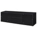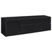 This sleek entertainment center combines a contemporary black finish with practical storage solutions. Made from durable engineered wood, it’s topped with a scratch-resistant eco-friendly laminate veneer. The unit includes two cabinets for concealed storage, an open shelf with a cable management hole for media devices, and a spacious drawer for organization. Its sturdy construction and modern silhouette make it a versatile piece for any entertainment setup. Key Features: • Modern TV stand in a sleek black finish • Compact 60-inch design perfect for smaller spaces • Scratch-resistant, eco-friendly laminate veneer surface • Two spacious cabinets and dual central drawers for organization • Open shelf with cable management hole for devices • Durable engineered wood construction for lasting stability