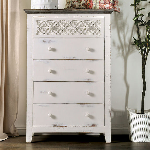 FOA West NetThis lighter tone chest will be a great addition to any farmhouse space. Between the light vintage ivory frames to the contrasting rustic gray crow...