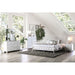 Simple yet eye-catching, this bed features full metal construction to emphasize the elegantly modern appearance. Seven spindles accentuate the headboard and footboard while offering added support for the entire bed. Powder coating available in two finishes: dark bronze or vintage white.