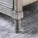 DAPHNE Gray Cal.King Bed, 91 3/4"L X 81 1/4"W X 58"H, 154.28lbs. In addition to stunning carved details and felt-lined top drawers, this transitional style bedroom collection comes with built-in headboard shelves and convenient touch lights. An extra drawer hides within the nightstand and dresser while the chest o ffers extra functionality with its lift-top jewelry storage, complete with mirror. Sleek silver tone handles sparkle against the weathered gray finish for a beautifully contemporary design that will beautify any bedroom. Features: Transitional Style Padded Fabric Headboard Built-in Touch Light in Headboard Hidden Drawer in Night Stand and Dresser Double Drawer Fronts Felt-lined Top Drawers Solid Wood, Wood Veneer, Others Gray Finish