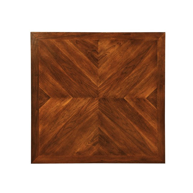 In both casual and formal settings, this beautiful counter height table welcomes you to refined transitional dining space with solid wood in a dark cherry finish. Features squared table top with squared tapering legs.