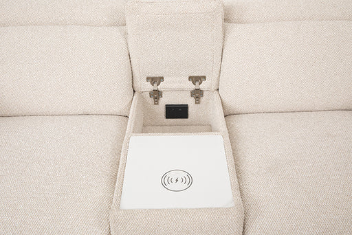 FOA West NetContemporary White Hardwood, Fabric, Others Oversized 1.5 Seats Dual Power Channeled Rounded Wide Arms Console Storage w/ Storage Drawer Wireless ...