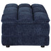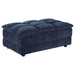 This elegant tufted ottoman is a versatile addition to your living space, offering both style and function. Upholstered in soft blue corduroy fabric with a pillow top grid-tufted design, it provides a pillow top comfortable surface for resting your feet, extra seating, or even as a stylish centerpiece. The solid and engineered wood construction ensures lasting durability, making it a reliable and functional piece for everyday use.
