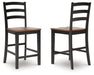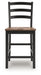This counter height bar stool dresses up your favorite farmhouse motifs with modern flair. A contoured butcher-block style seat keeps you comfortable and provides a ruggedly chic contrast to the sleek black frame.