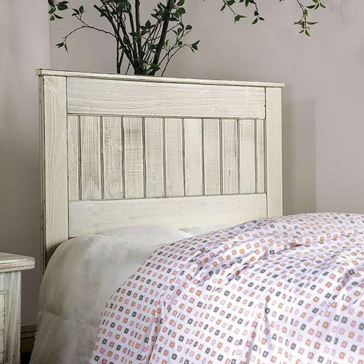 FOA West NetThis luscious solid wood headboard is painted in a distressed white finish. The wooden planks along the headboard invite a rustic aura into your be...